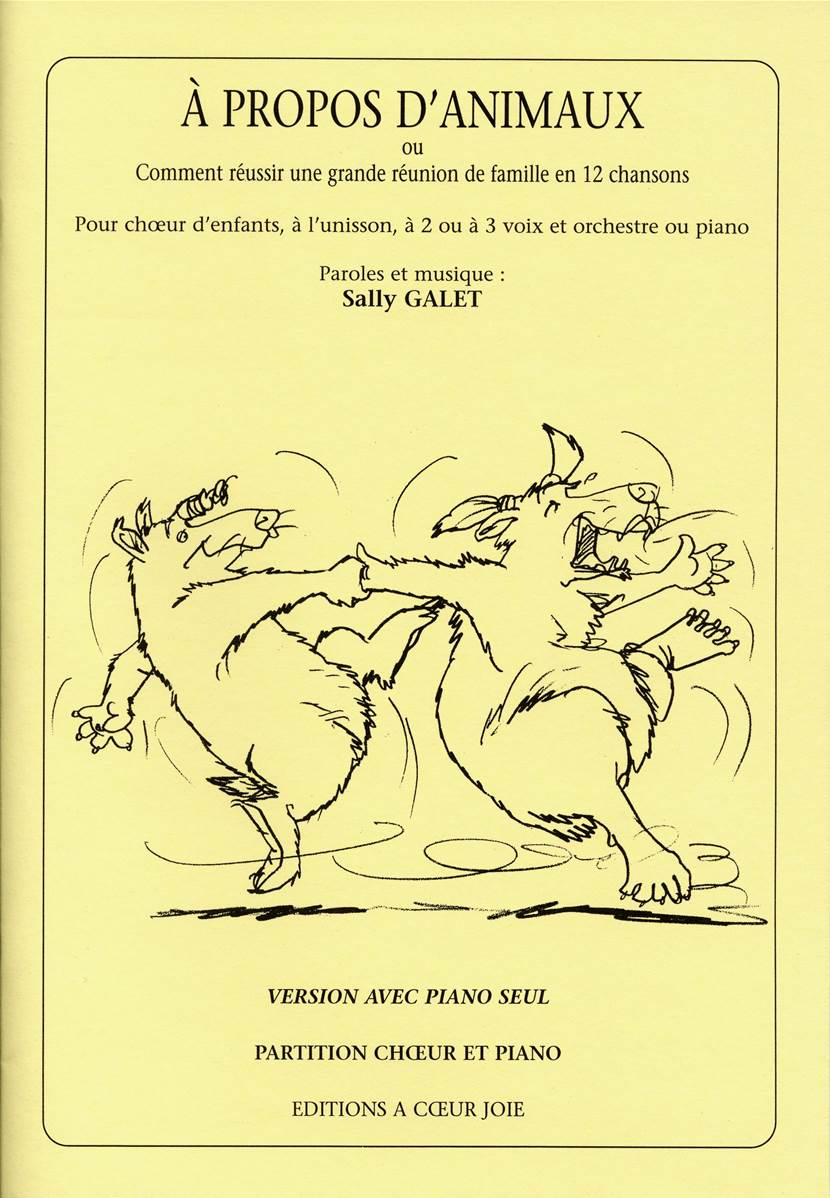 Pour choeur d’enfants, 12 chansons à l’unisson, à 2 ou à 3 voix et orchestre ou piano, textes et musiques de Sally Galet.