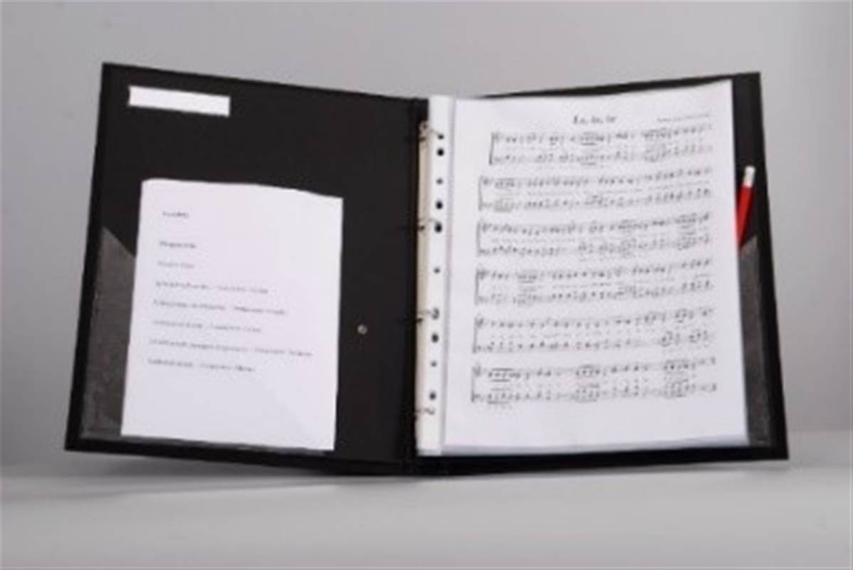 Le modèle Classique, en version classeur, pour ranger vos partitions dans des pochettes transparentes. Disponible en noir.