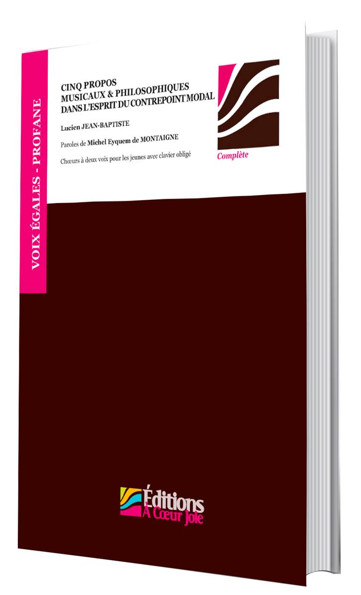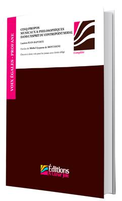 Les cinq propos musicaux et philosophiques ne sont ni pastiche de musique ancienne ni exercice d’école. Le but poursuivi est triple : ressentir l’esprit et le charme de la modalité, apprécier les techniques dès un traitement polyphonique simple, à deux voix, pénétrer enfin la subtilité des lignes musicales émanant de ces combinatoires. Le talent de l’écrivain-philosophe que fut Montaigne (1533-1592), contemporain de ces deux genres musicaux, ne pouvait que servir admirablement ce projet, les aphorismes retenus parmi les Essais se prêtant à plusieurs niveaux de lecture.