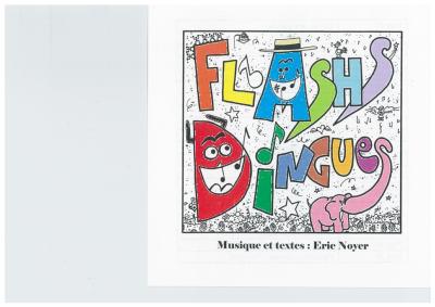 CD du recueil Flashs Dingues, suite de sketches musicaux écrits par Éric Noyer pour chœur de jeunes à 1 ou 2 voix (SA), avec piano, batterie et récitant (contrebasse ad libitum), propose un voyage autour du monde avec, à chaque escale, une courte histoire chantée dans un style de musique toujours différent. Sur ce CD vous trouverez la réalisation complète et le play back.