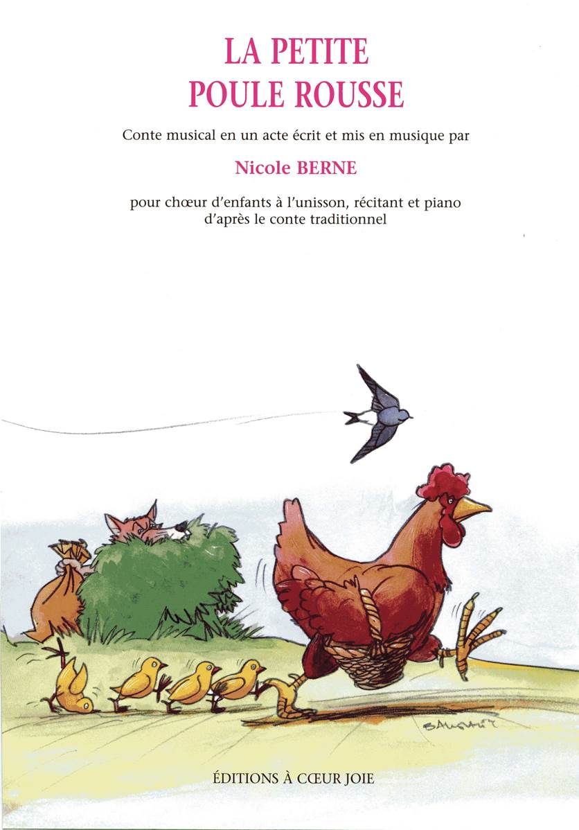 Venez vite chanter La Petite Poule Rousse, conte musical en un acte joliment mis en musique par Nicole Berne pour choeur d’enfants à l’unisson, récitant et piano d’après le conte traditionnel bien connu.