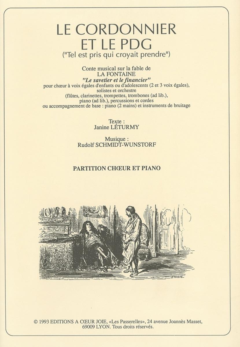 Jeu musical (opéra bouffe) sur une fable de La Fontaine pour choeur de 2 à 3 voix égales, flûtes, clarinettes, trompettes, trombones ad libitum, percussions, piano et cordes