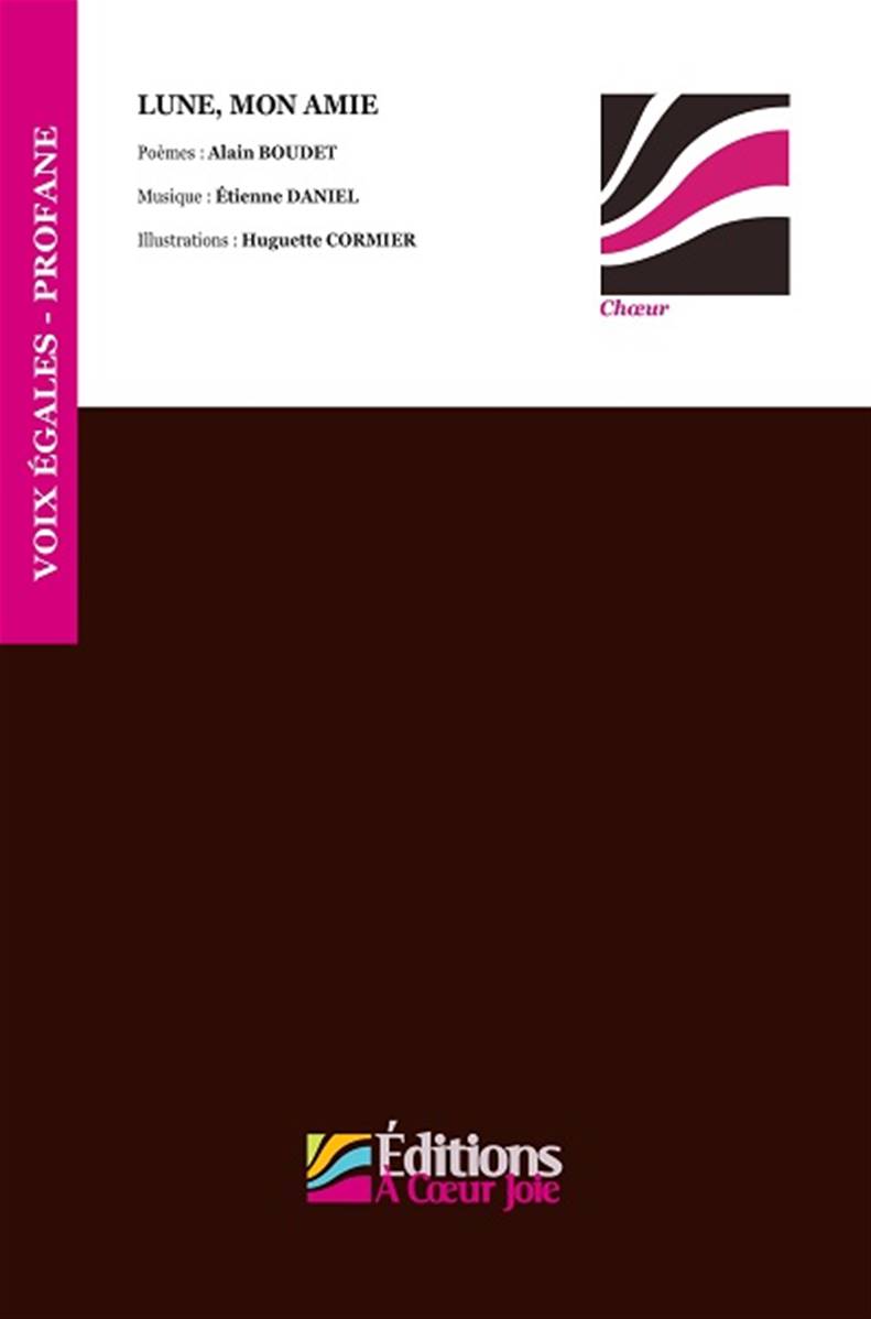 Poèmes d’Alain Boudet mis en musique par Étienne Daniel et illustrés par Huguette Cormier pour chœurs d’enfants à partir de 6 ans (S).