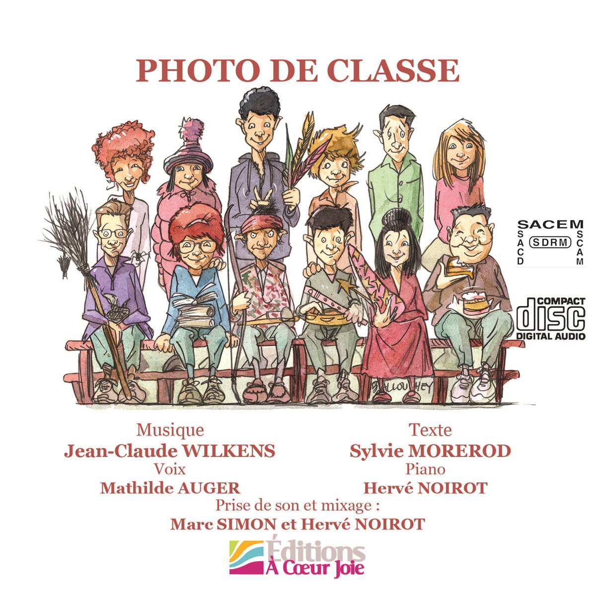 Avec Photo de classe, album issu de la première collaboration entre Sylvie Morerod (texte) et Jean-Claude Wilkens (musique), les Éditions À Cœur Joie proposent aux 5-12 ans de découvrir les caractères de 12 élèves d'une même classe. À travers de petits moments de vie pris sur le vif, ils feront connaissance avec Victoire, Roméo, Mehdi et les autres ...